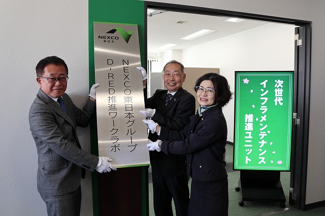 5日、札幌市内で催された開所式には、同大の副学長で大学院情報科学研究院長、D-RED拠点長でもある長谷山美紀教授、NEXCO東日本関東支社の千田洋一支社長、ネクスコ東日本エンジニアリングの水口和之社長らが出席。