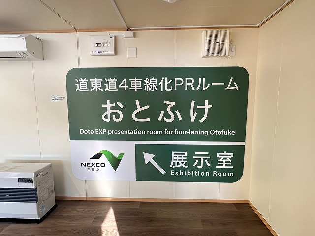 また、道東道の歴史を年表形式で紹介しているほか、記念撮影用に高速道路上の標識を模したパネルを設置している。